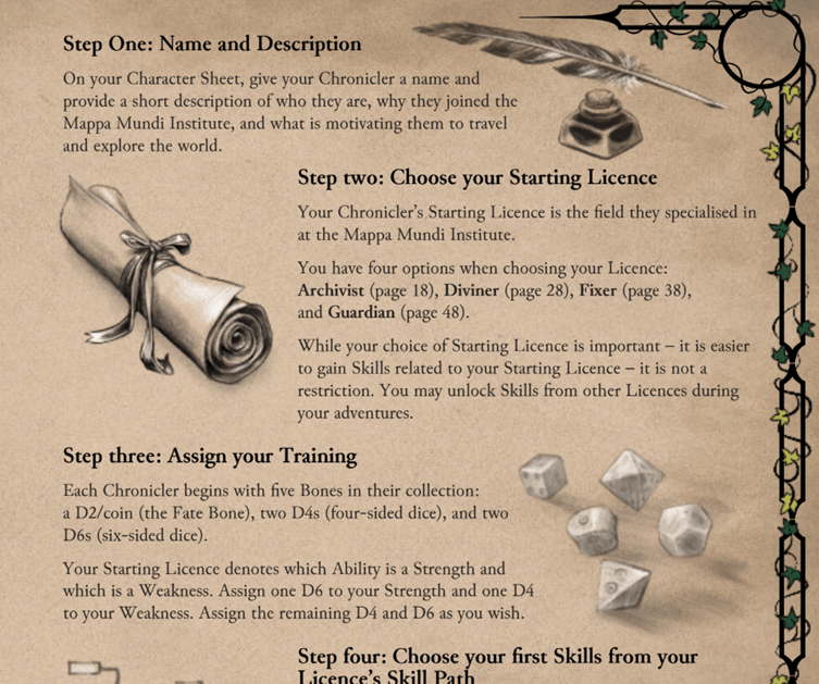 Now, reading on a bit, it turns out Mappa Mundi is, in fact, a bit post-apocalyptic. At least, there have been some disasters. The regions of the world are isolated from one another, so the goal isn’t just exploration but reconnection. That’s something I shall keep in mind as I make a character.