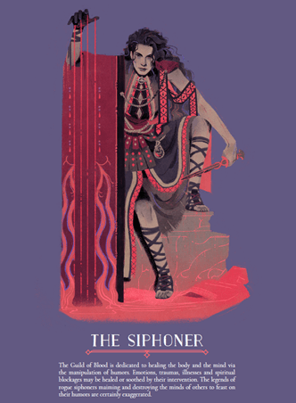Out of all the options – a nice blend of magic and swashbuckling, from occultists, to scoundrels, to actors, to knights errant – I’m choosing a Siphoner: Medics and healers who study the four humours.